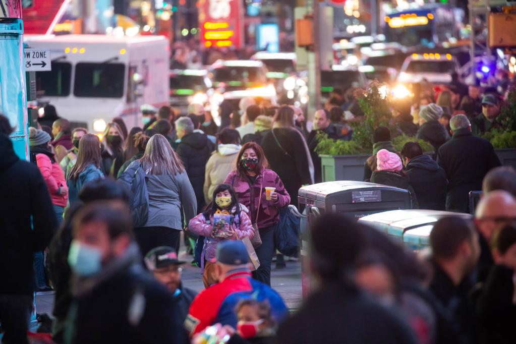 12月14日,人们走在美国纽约时报广场。新华社发(郭克摄)