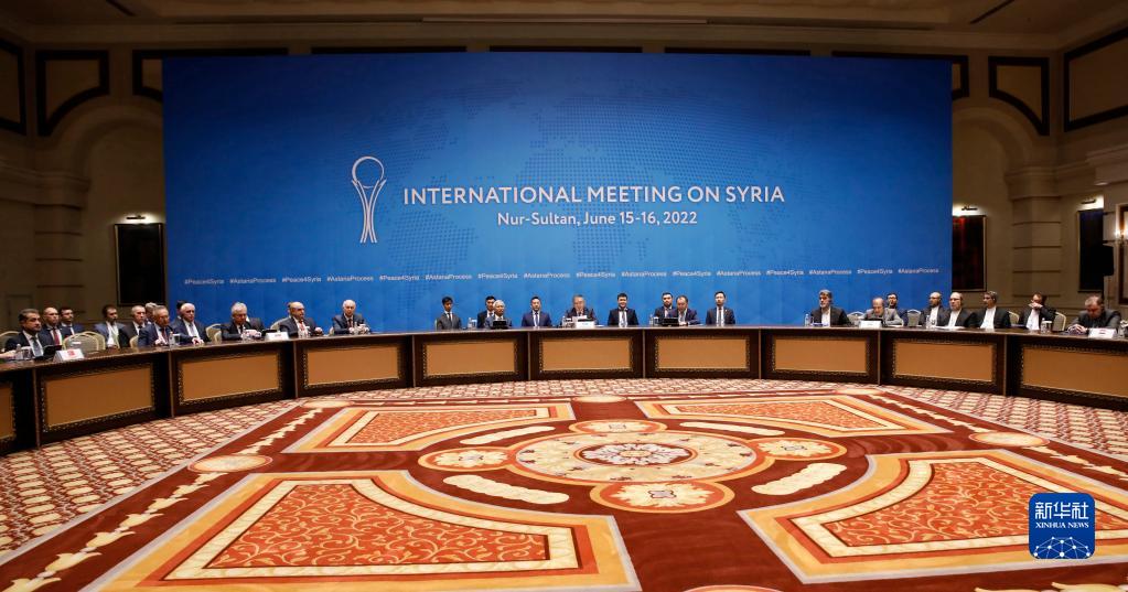 这是6月16日在哈萨克斯坦努尔苏丹拍摄的第18轮叙利亚问题阿斯塔纳会谈现场。新华社发(奥斯潘诺夫 摄)