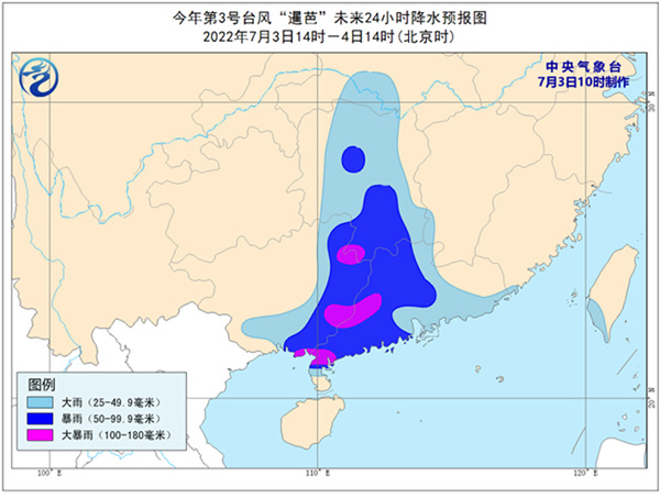 7月3日上午,今年第3号台风“暹芭”从广西继续强势北进。