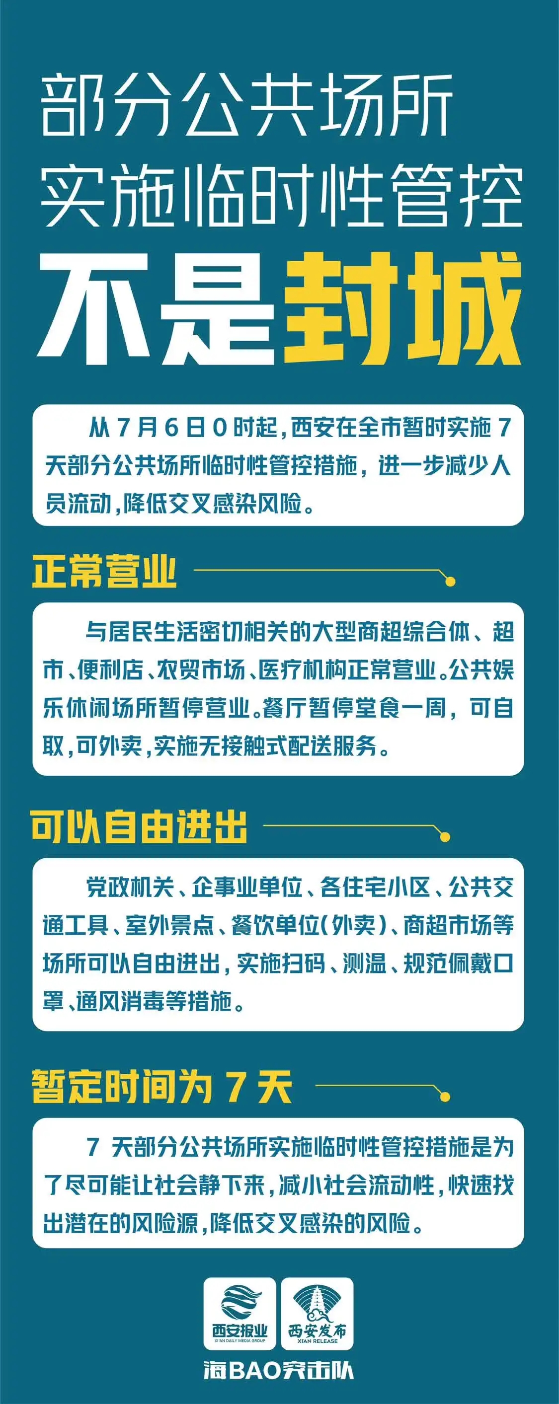 西安发布7月5日深夜发文:从7月6日0时起,西安在全市暂时实施7天部分公共场所临时性管控措施,进一步减少人员流动,降低交叉感染风险。