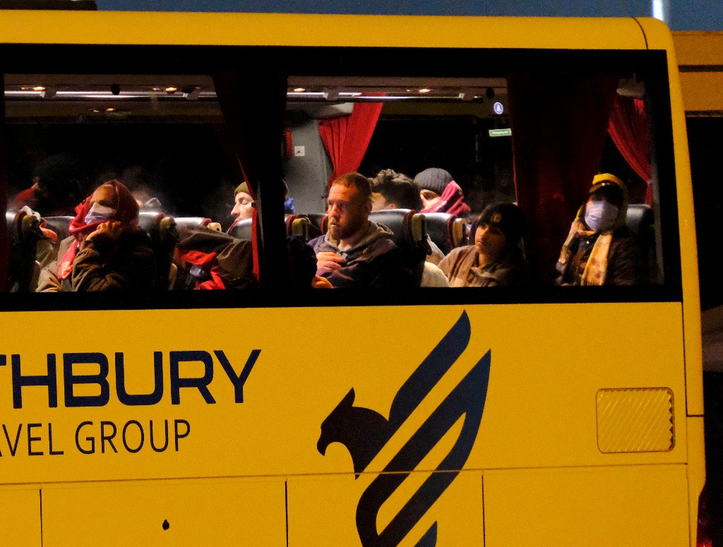 2021年11月24日,非法移民在偷渡到英国多佛后坐在车中等待离开。新华社发(史蒂夫·芬恩摄)