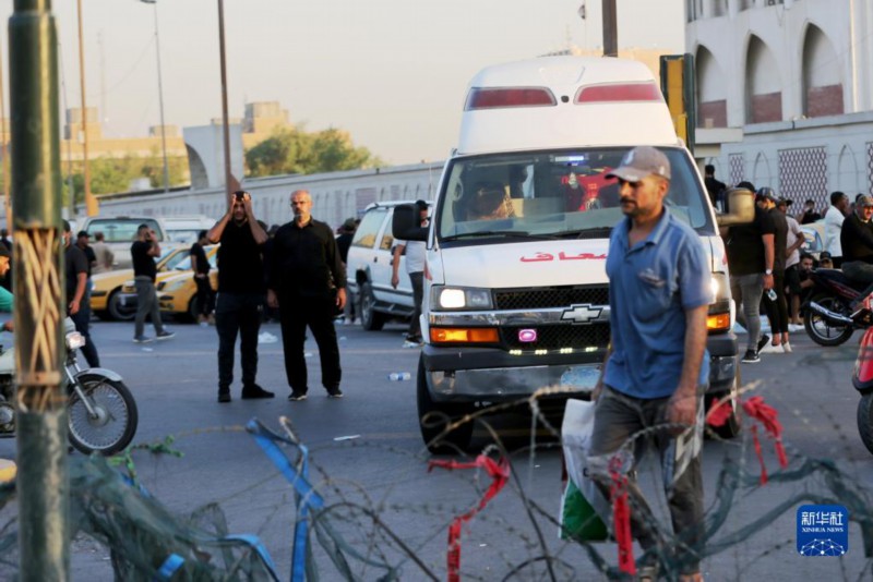8月29日,在伊拉克首都巴格达,救护车驶入“绿区”。新华社发(哈利勒·达伍德摄)