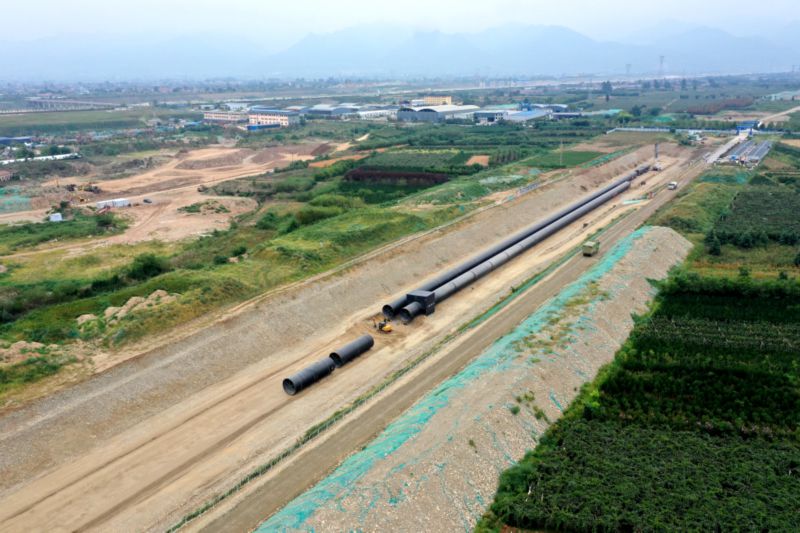 图为引汉济渭二期工程压力钢管安装施工现场。(陕西省引汉济渭工程建设有限公司供图)