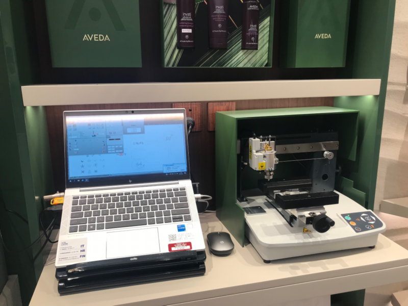雅诗兰黛护发品牌艾梵达中国内地首店为消费者提供定制刻字服务。新华社记者周蕊 摄
