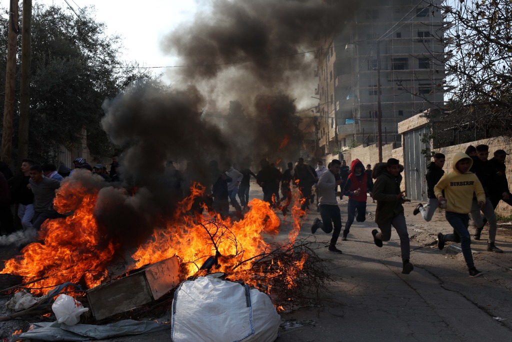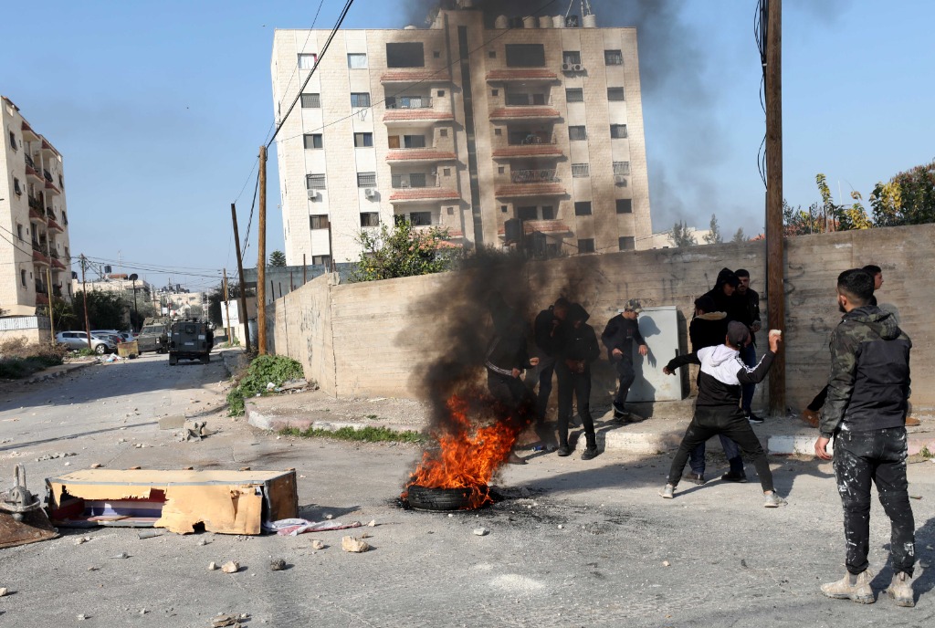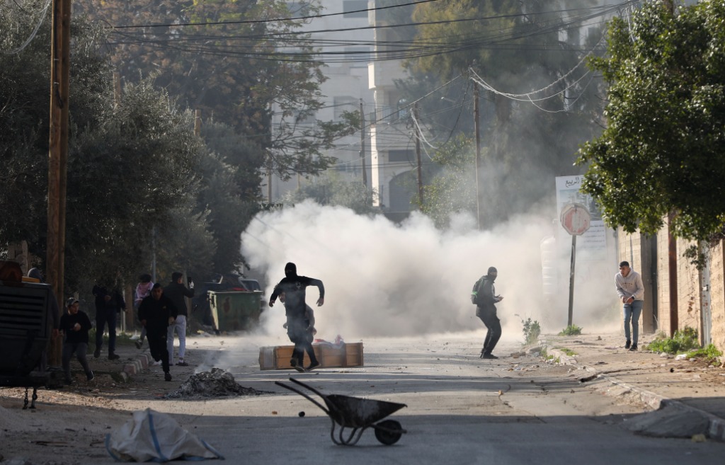 1月26日,在约旦河西岸北部城市杰宁,巴勒斯坦抗议者与以色列军队发生冲突。新华社发(艾曼·努巴尼摄)