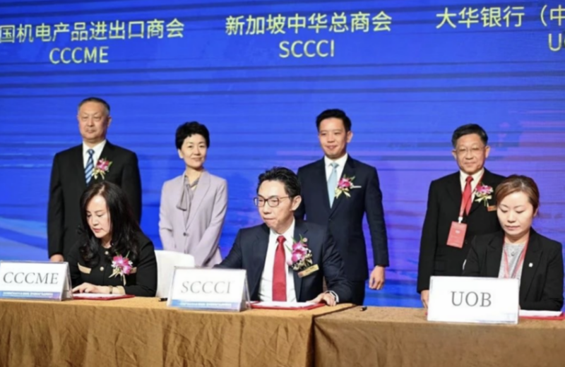 中国机电商会、新加坡中华总商会和大华银行(中国)有限公司共同签署《合作备忘录》。三方将发挥各自优势,通过资源整合和业务合作达成发展共赢的目标,为进一步提升中国、新加坡及其他RCEP成员国之间的经贸合作水平作出积极努力。