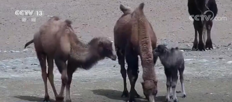 据保护区工作人员介绍,野骆驼的产羔期在每年的二月到四月期间,这只幼崽刚出生不到一个月时间。整个饮水过程中,小骆驼紧紧跟在成年野骆驼旁,成年野骆驼也不时抬头,警觉地观察着周围环境。据了解,野骆驼是世界上极其濒危的物种,数量十分稀少。