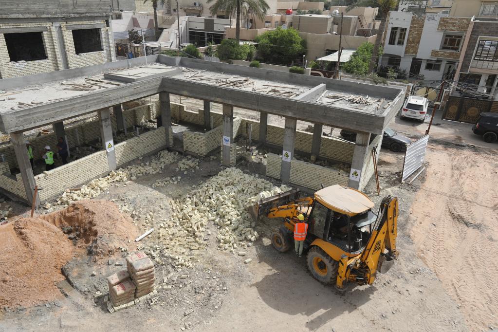 4月9日,在伊拉克巴格达省,中国和伊拉克工作人员在一处示范学校项目施工现场工作。新华社发(哈利勒·达伍德摄)
