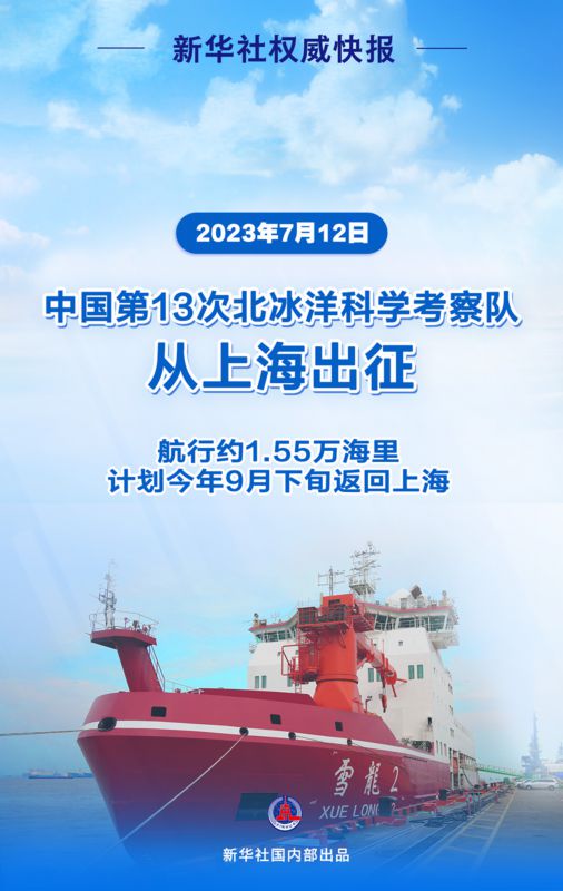7月12日,由自然资源部组织的中国第13次北冰洋科学考察队,乘坐“雪龙2”号极地科考破冰船,从上海出征,前往北冰洋执行科学考察任务。本次考察预计总航程约1.55万海里,计划今年9月下旬返回上海。