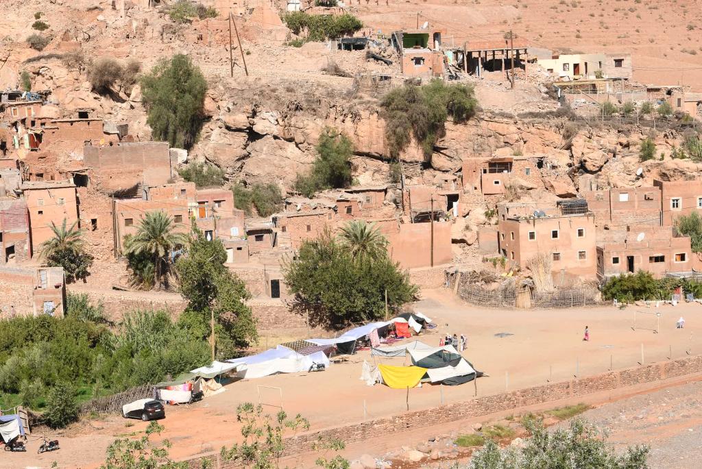 这是9月10日在摩洛哥震中附近的艾兹鲁村拍摄的一处临时安置点。新华社发(艾萨摄)