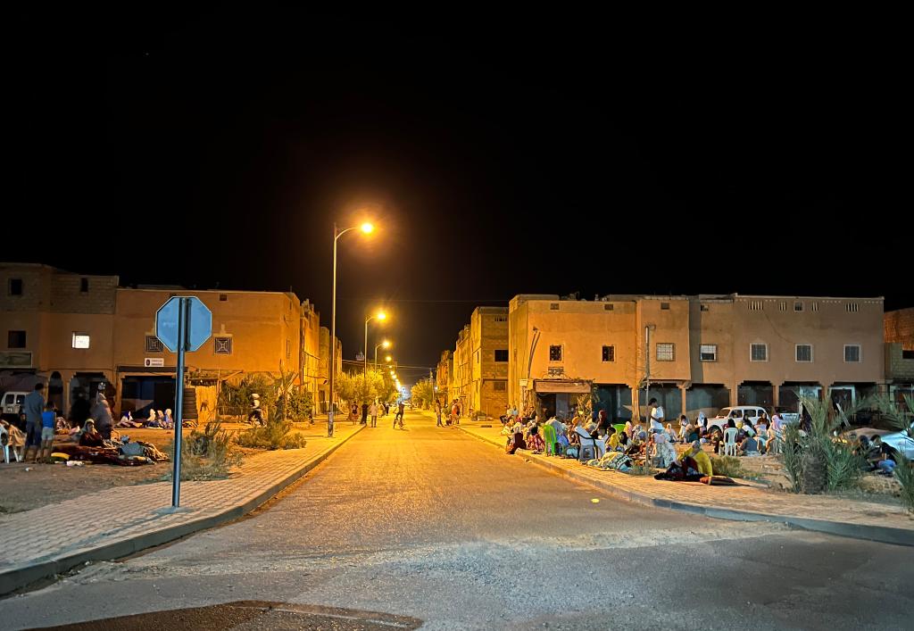 9月9日凌晨,在距离震中200多公里的摩洛哥瓦尔扎扎特市,居民在市区的空地避险(手机照片)。新华社记者王东震摄