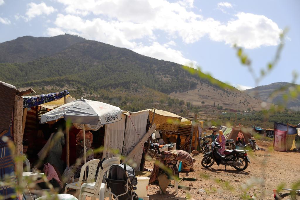 这是9月10日在摩洛哥震中附近的艾米兹米兹村拍摄的一处临时安置点。(新华社记者王东震摄)