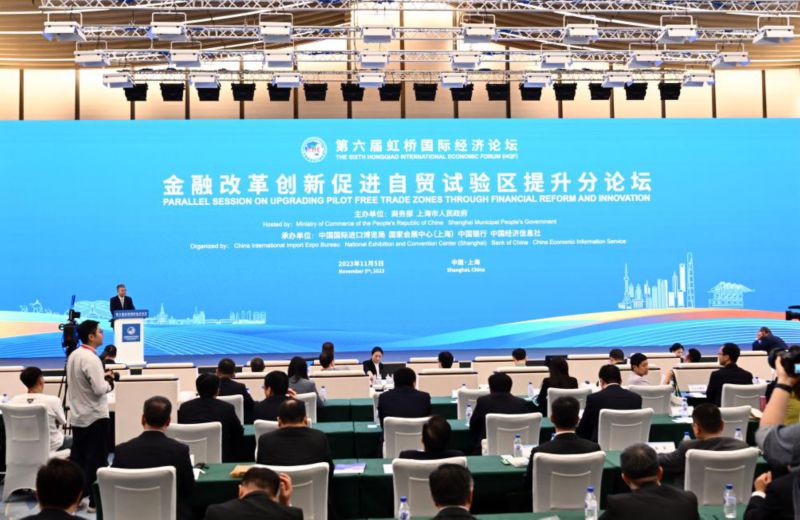 11月5日,第六届虹桥国际经济论坛“金融改革创新促进自贸试验区提升”分论坛在上海举行。新华社记者 金良快 摄