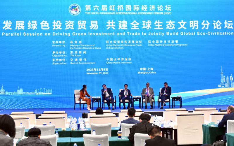 11月5日,第六届虹桥国际经济论坛“发展绿色投资贸易 共建全球生态文明”分论坛在上海举行。新华社记者 金良快 摄
