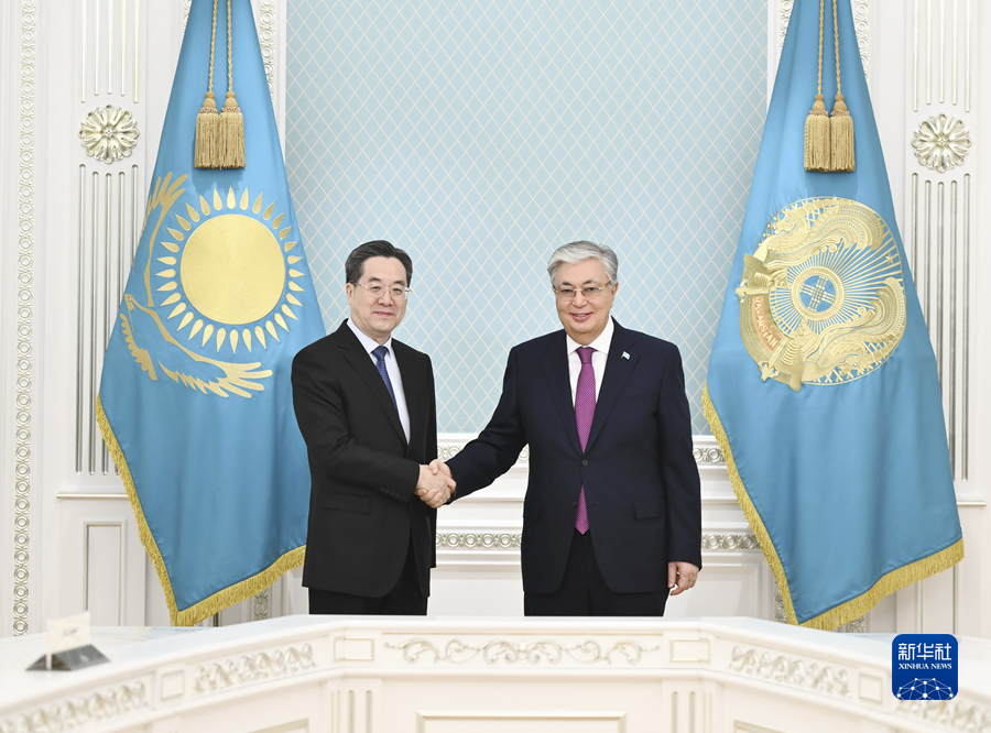 在会见托卡耶夫时,丁薛祥转达习近平主席对托卡耶夫总统的亲切问候和良好祝愿。丁薛祥表示,在习近平主席和总统先生亲自擘画和引领下,中哈建立永久全面战略伙伴关系,率先构建双边命运共同体,在推动构建人类命运共同体方面走在前列。中哈是唇齿相依的亲密邻邦和命运与共的战略伙伴。中方愿同哈方一道,以落实两国元首重要共识为引领,以推进高质量共建“一带一路”为主线,携手推动中哈永久全面战略伙伴关系向更高水平、更广空间迈进。