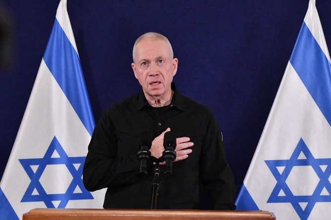 11月18日,以色列国防部长加兰特在特拉维夫出席记者招待会。新华社/基尼图片社