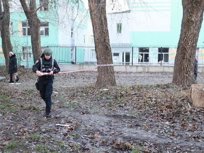 11月25日,在乌克兰基辅市,执法人员封锁空袭现场。新华社发(罗曼·佩图什科夫摄)