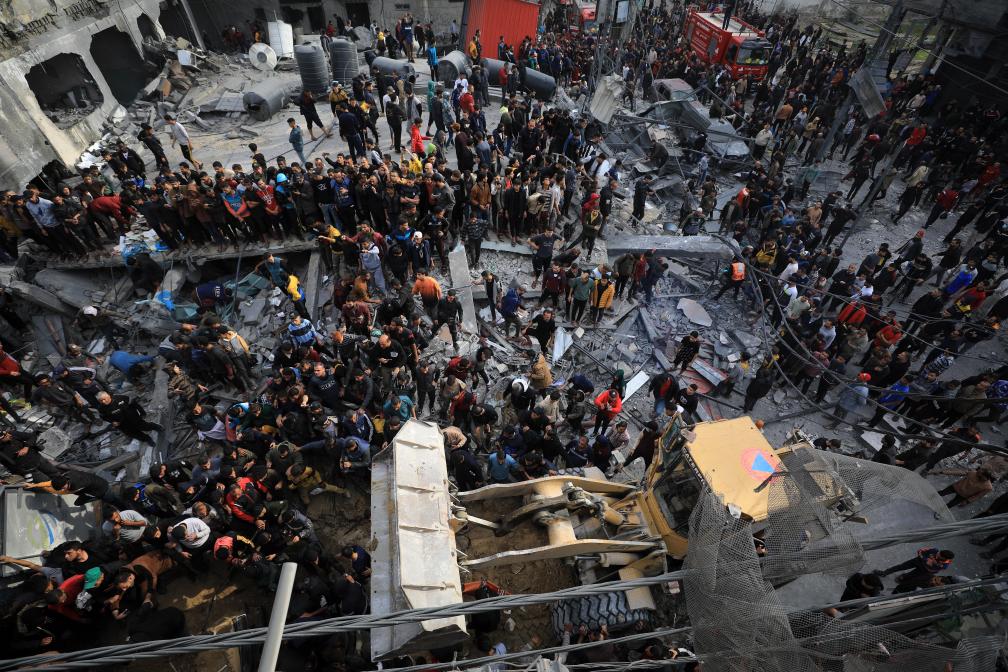 12月20日,在加沙地带南部城市拉法,人们在以军空袭后开展救援。新华社发(亚西尔·库迪摄)