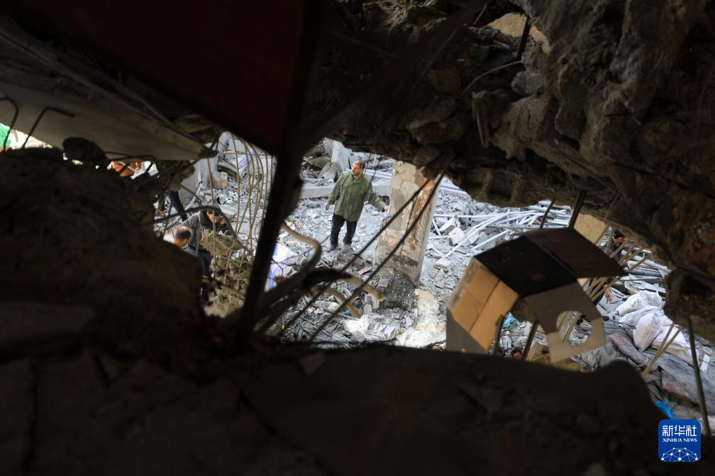 这是2月24日在加沙地带南部城市拉法拍摄的以军空袭后的建筑。