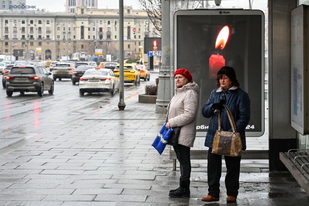 3月23日,俄罗斯首都莫斯科街头的广告牌播出蜡烛图案,悼念莫斯科近郊恐袭事件遇难者。新华社记者曹阳摄