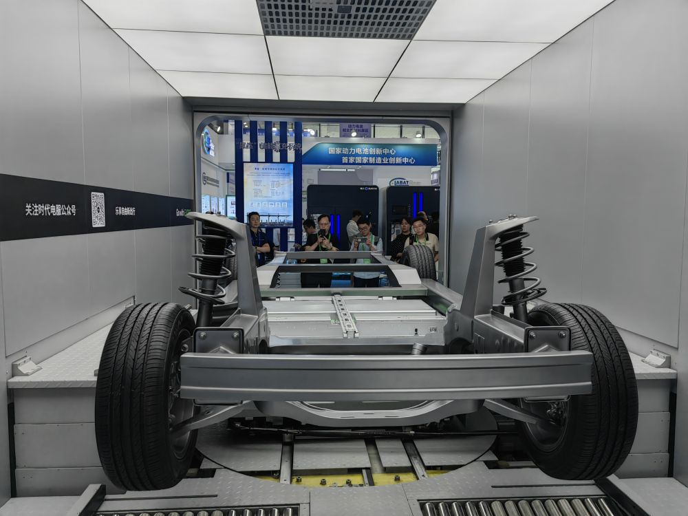 这是在四川省宜宾市举行的2023世界动力电池大会上展示的新能源汽车换电系统(2023年6月9日摄)。新华社记者 胡旭摄