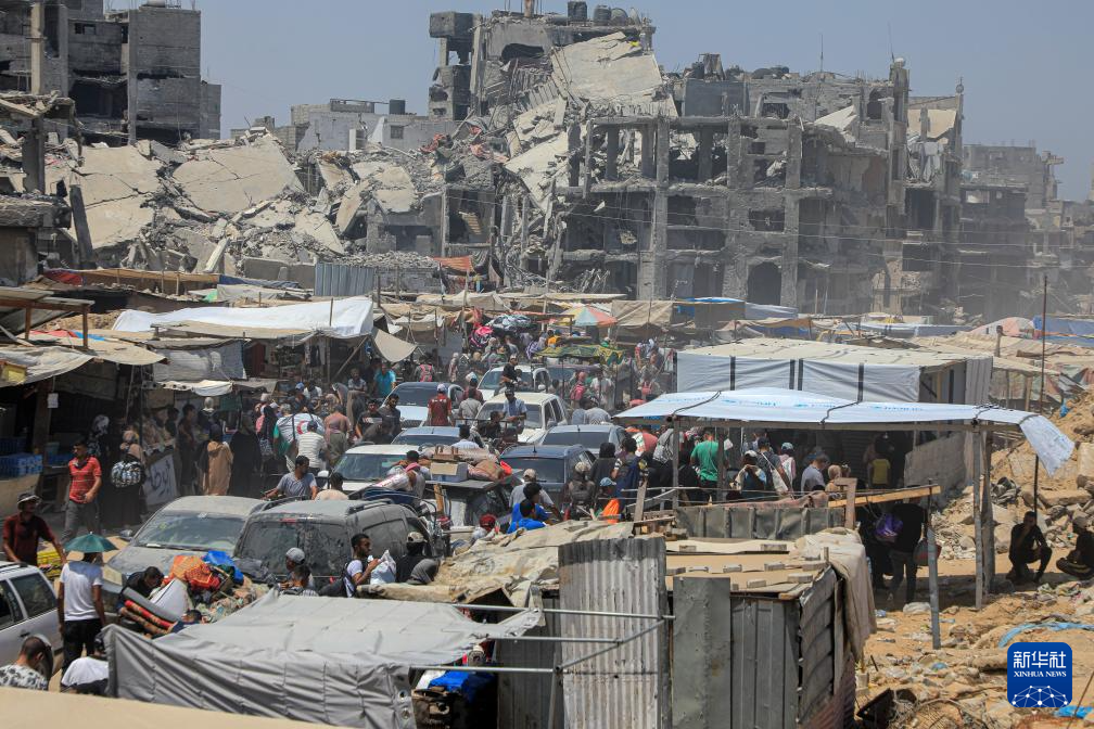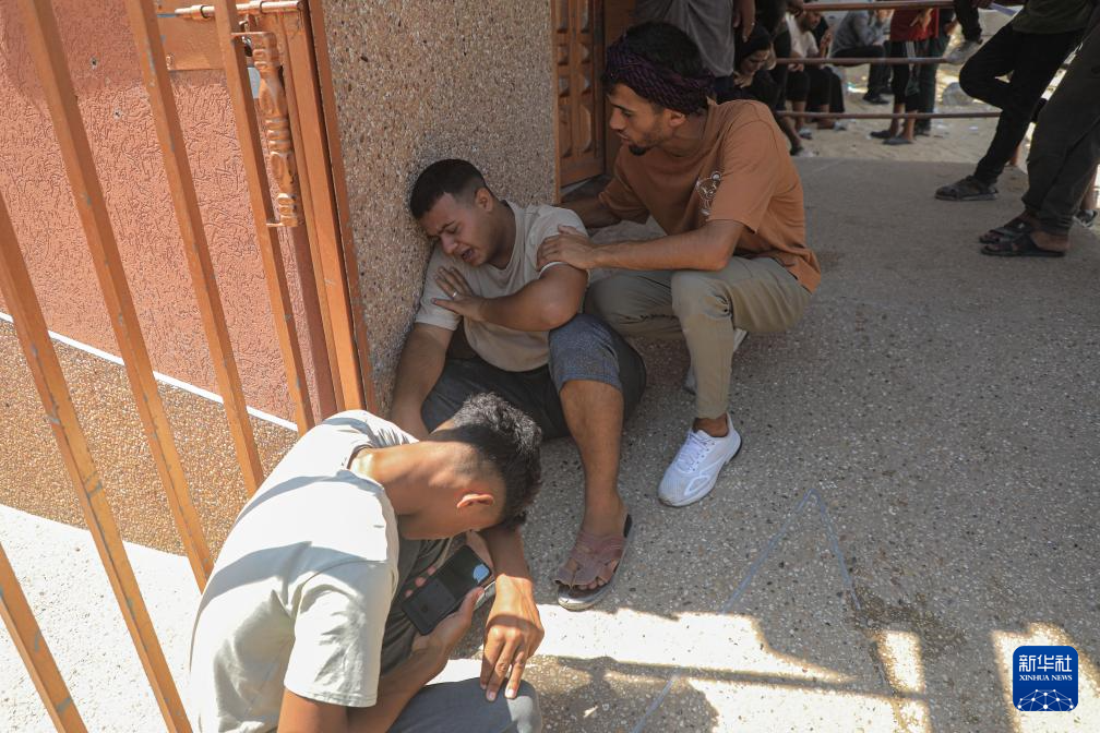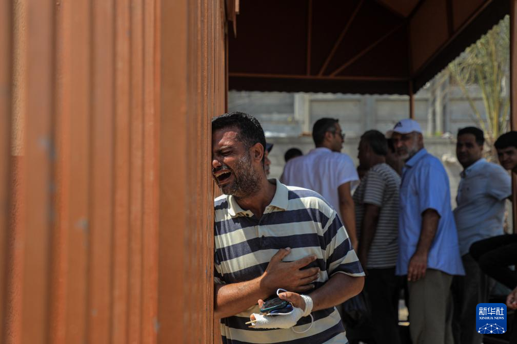 7月22日,在加沙地带南部城市汗尤尼斯,人们哀悼死难者。
