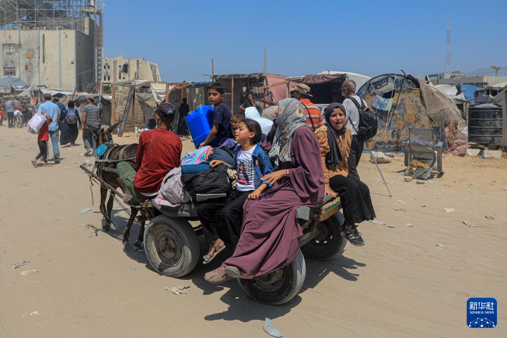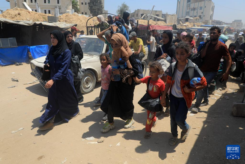 7月22日,在加沙地带南部城市汗尤尼斯,人们逃离家园。