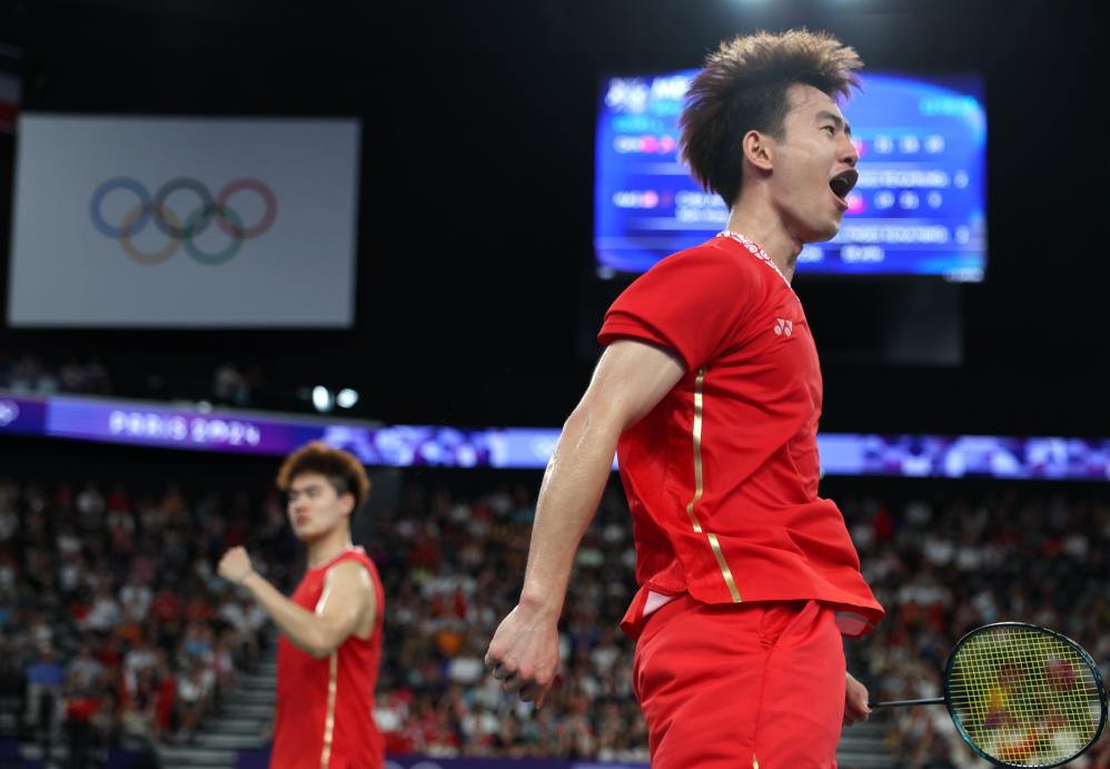 8月2日,中国组合梁伟铿/王昶(右)在比赛中。新华社记者 陈斌 摄