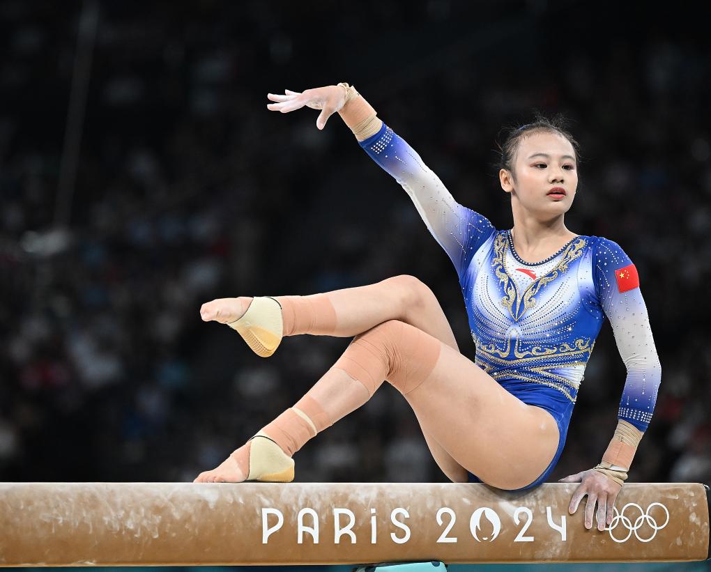 8月1日,中国选手邱祺缘在平衡木比赛中。新华社记者 程敏 摄