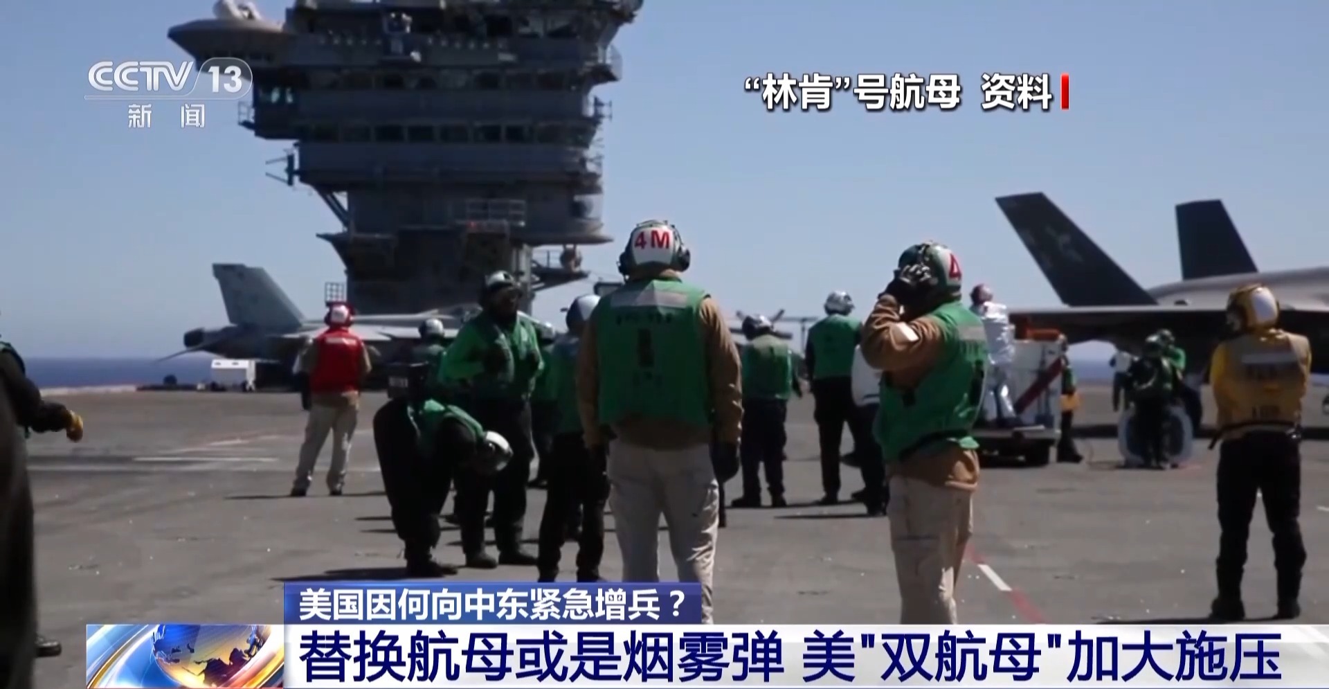 总台环球资讯广播记者魏东旭:而且五角大楼已经对外表示,要从太平洋地区调派“林肯”号核动力航母,针对“罗斯福”号核动力航母进行替代,但是这很可能是掩人耳目的烟雾弹。