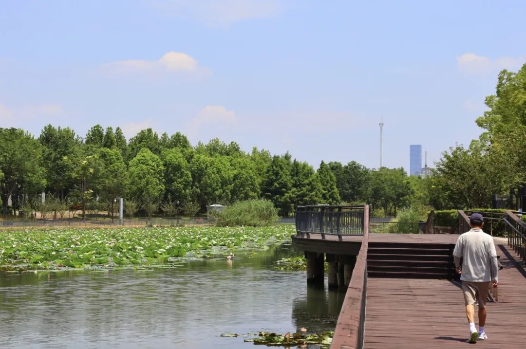 据了解,在纵泾港的南侧还建有一处亲水平台和休闲长廊,不仅便于市民近距离观赏河道中的荷花、睡莲等水生植物,还能坐在其中休憩或漫步,感受河道“一步一景”的魅力。