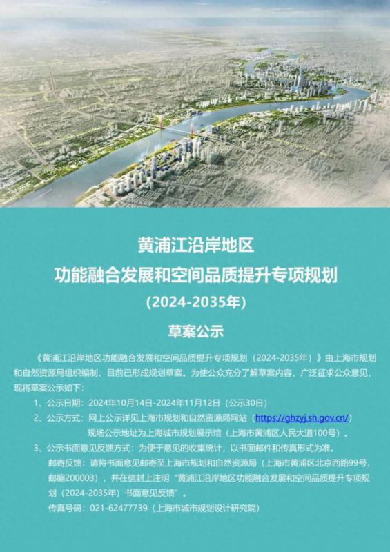 聚焦黄浦江沿岸功能融合发展和空间品质提升,这项规划草案公示