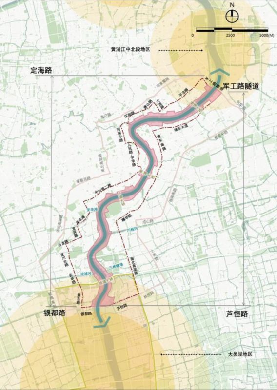 本次规划范围北至定海路-军工路,南至银都路-芦恒路,覆盖流域全长约50公里,涉及杨浦、虹口、黄浦、徐汇、闵行、浦东6个行政区,向南衔接大吴泾片区,向北衔接黄浦江中北段地区和吴淞创新城。公示日期为2024年10月14日-2024年11月12日(公示30日)。