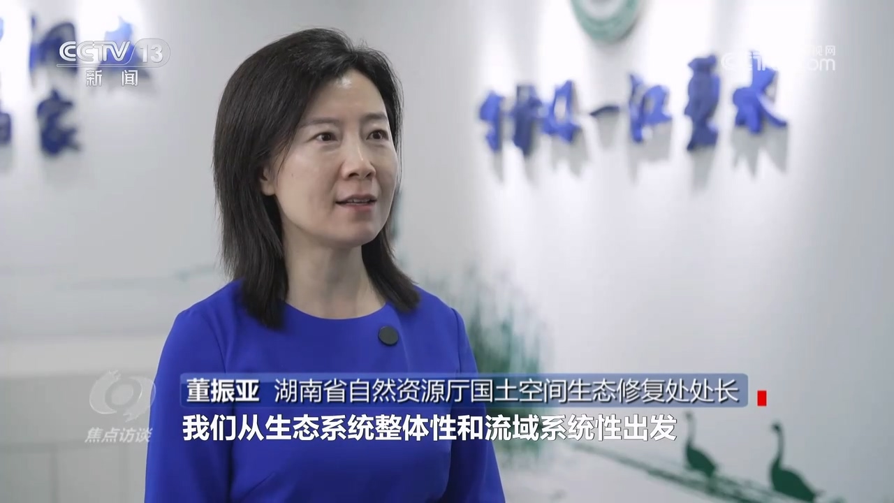 湖南省自然资源厅国土空间生态修复处处长董振亚:“我们从生态系统整体性和流域系统性出发,将整个洞庭湖平原及外围丘陵山地作为一个完整的自然地理单元,突出问题导向,强化山上山下、岸上水里协同治理。”