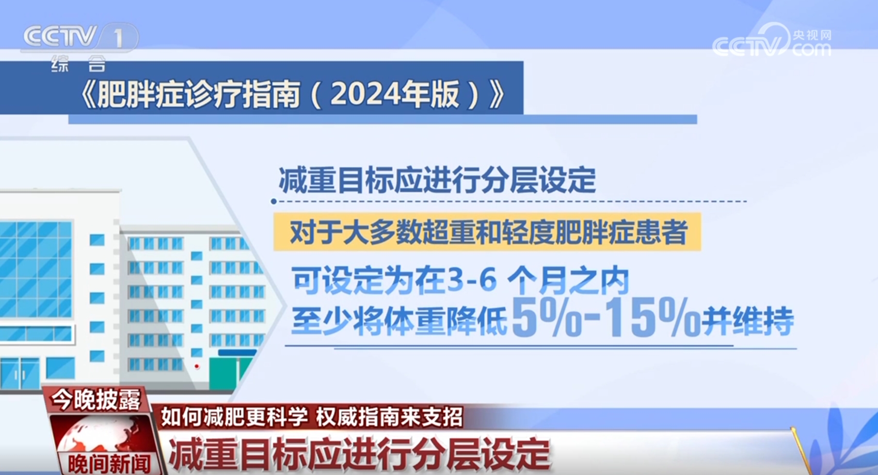 《肥胖症诊疗指南(2024年版)》明确了肥胖症的治疗原则,指出肥胖症治疗的主要目的在于减少蓄积在体内过多的脂肪,降低肥胖症相关疾病的发生风险。而在减重过程中,需关注脱水、肌少症和内分泌系统的变化。建议每3—6个月,对减重效果和代谢指标进行评估。对于大多数超重和轻度肥胖症患者,可设定为在3—6个月之内,至少将体重降低5%—15%并维持;对于中、重度肥胖症患者,则可设定更高的减重目标。
