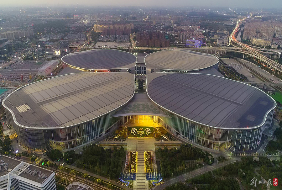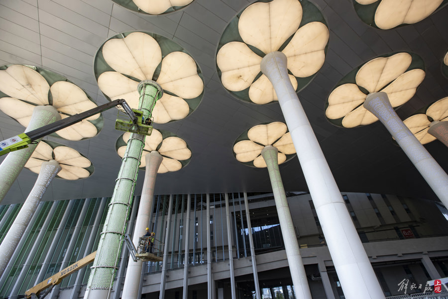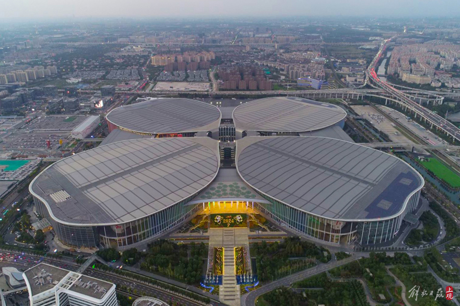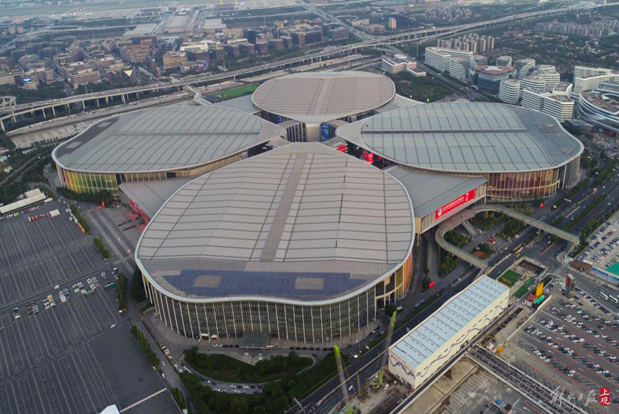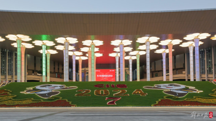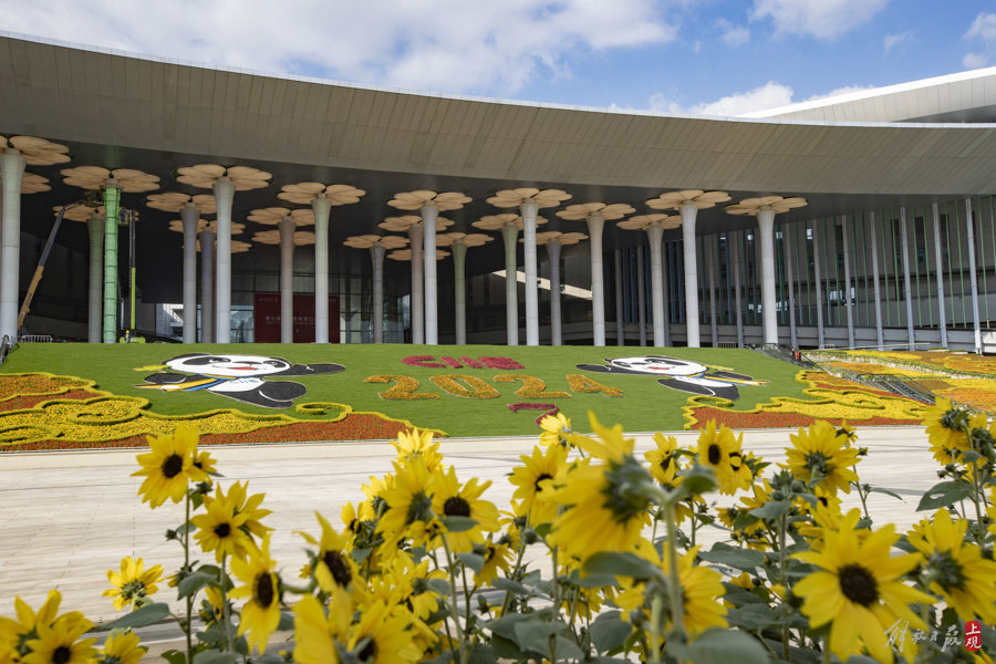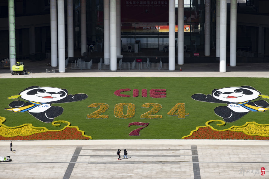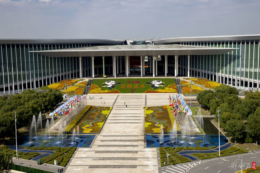 第七届进博会场馆景观装饰“定妆”,现场先睹为快