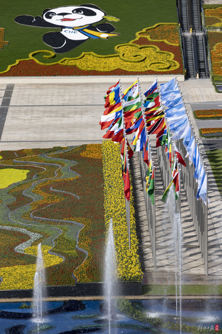 第七届中国国际进口博览会场馆景观装饰工作全面定妆。以“海纳百川、共享未来”为主题,主要在场馆的南广场以及西厅展开,现场还以约68万盆鲜花装点,全景展示中华大地锦绣缤纷的自然之美。