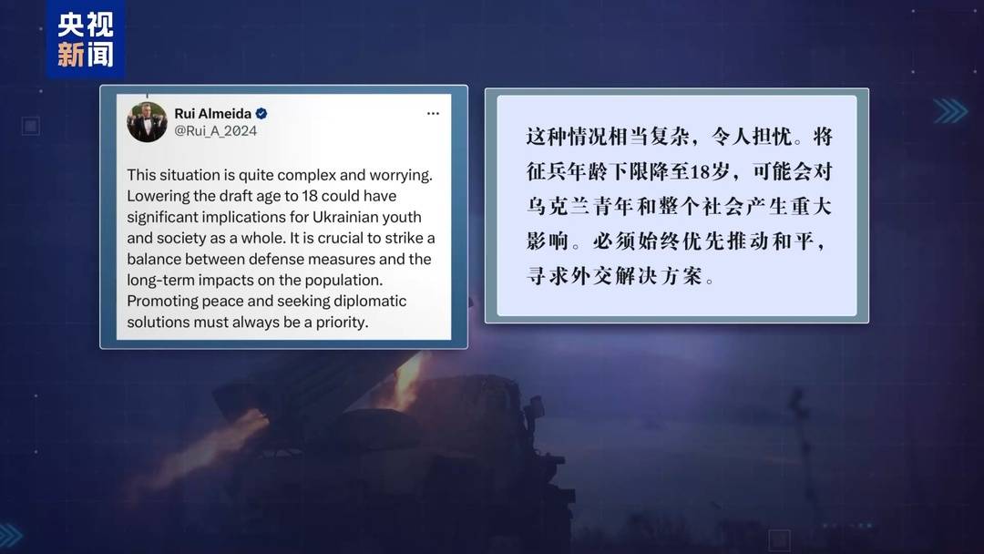 还有网友表示,“美国政府正在捣乱,(乌克兰)年轻人被迫死亡。”“这种情况相当复杂,令人担忧。将征兵年龄下限降至18岁,可能会对乌克兰青年和整个社会产生重大影响。必须始终优先推动和平,寻求外交解决方案。”
