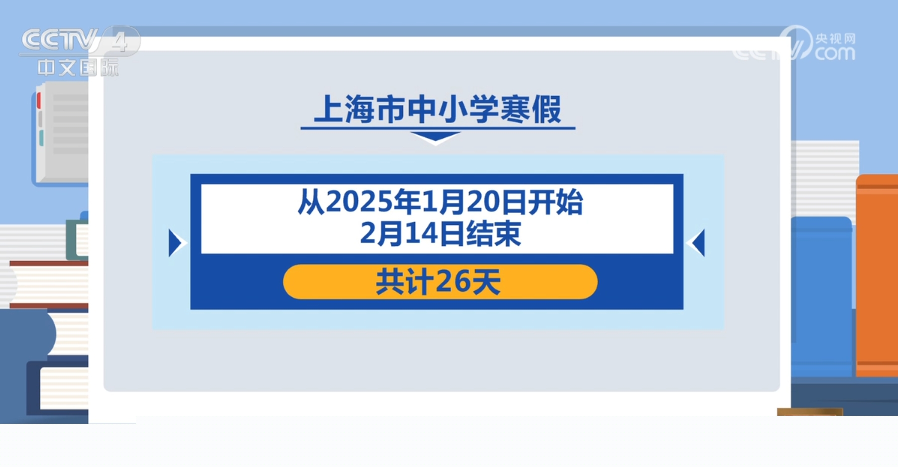 上海市中小学寒假从2025年1月20日开始,2月14日结束,共计26天。