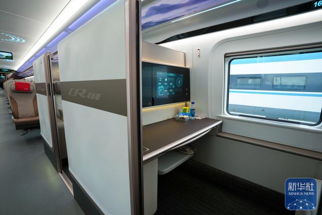 据介绍,CR450动车组样车运营速度、运行能耗、车内噪声、制动距离等主要指标国际领先。一是更高速。试验时速450公里,运营时速400公里,未来投入商业运营后可进一步压缩时空距离,让旅客出行更加便捷高效。二是更安全。制动距离更短、运行稳定性更优,在运营速度提升的情况下,制动距离基本相当。三是更节能。动车组整车运行阻力降低22%,减重10%。四是更舒适。舒适度指标更优,车内噪声降低2分贝,客室服务空间增加4%,可为旅客提供多样化、便利化、个性化服务,乘坐体验更好。五是更智能。行车与控制、司机智能交互、安全监控、旅客智能服务等领域均得到全面升级。
