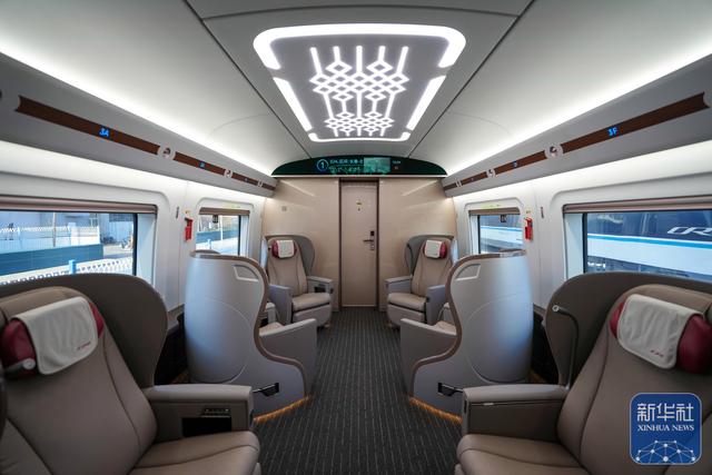 12月29日拍摄的CR450BF动车组样车车厢商务座。