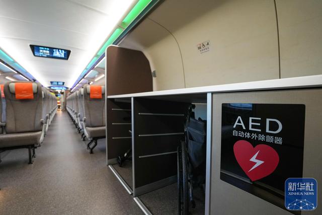 12月29日拍摄的CR450AF动车组样车车厢多功能包间。