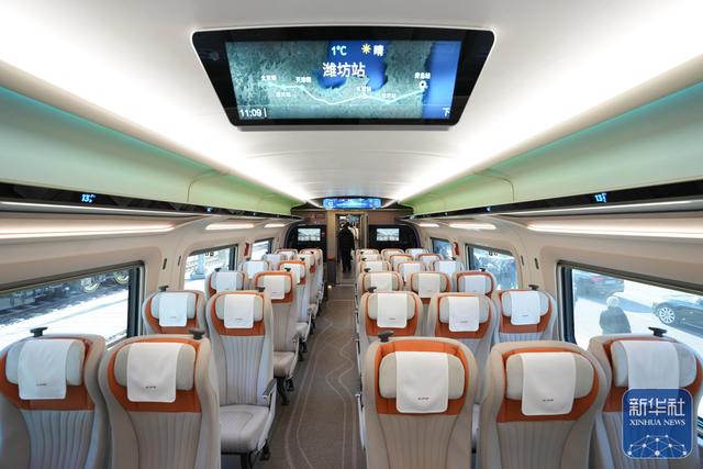 12月29日拍摄的CR450AF动车组样车车厢内部。