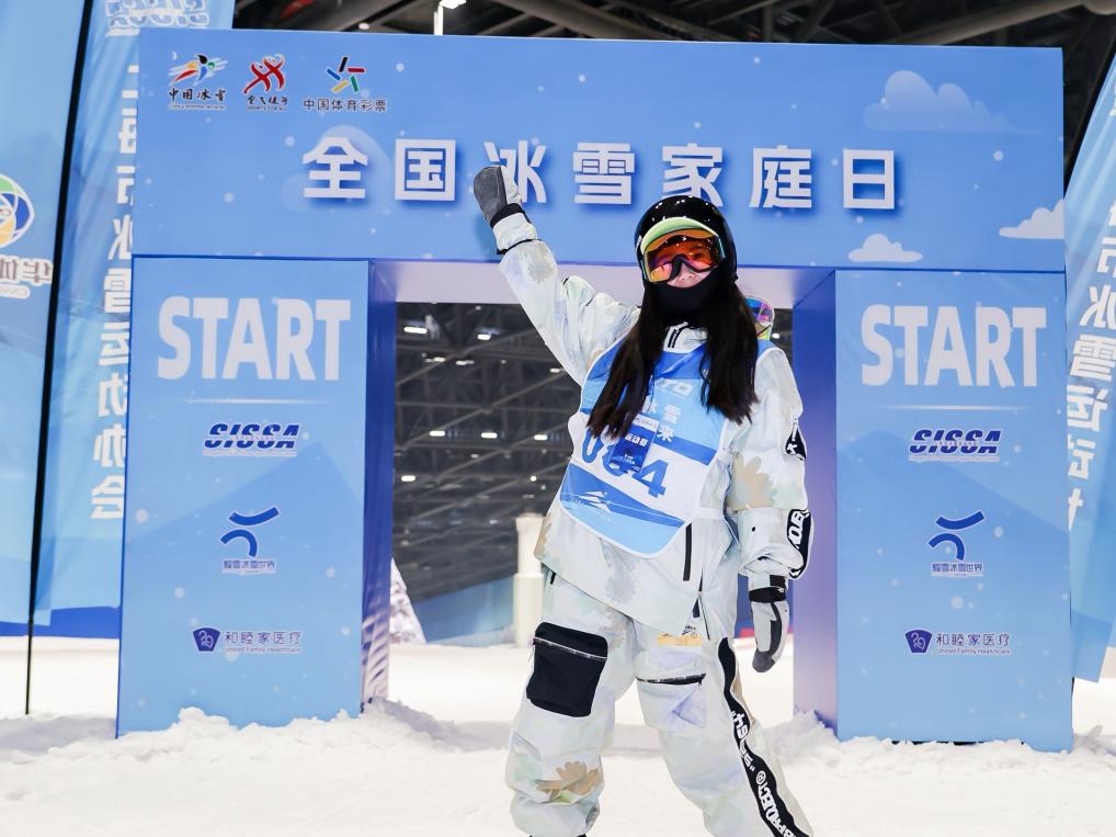 12月28日,参加滑雪比赛的选手在上海耀雪冰雪世界雪场“打卡”体验。新华社发