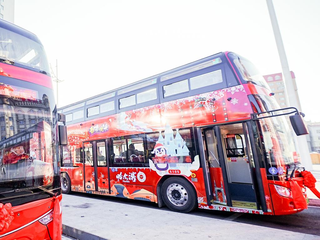 近日,双层观光巴士在哈尔滨“开跑”,沿途串联起松花江观光索道、中央大街、索菲亚广场等地标。车站服务人员还参加了英语口语培训,以便能与海外游客顺畅交流沟通。为助力哈尔滨冰雪旅游发展,哈尔滨交通集团与春秋集团强强联手,在2024年冬季正式成立哈尔滨春秋观光巴士有限公司,将双层巴士引入哈尔滨。