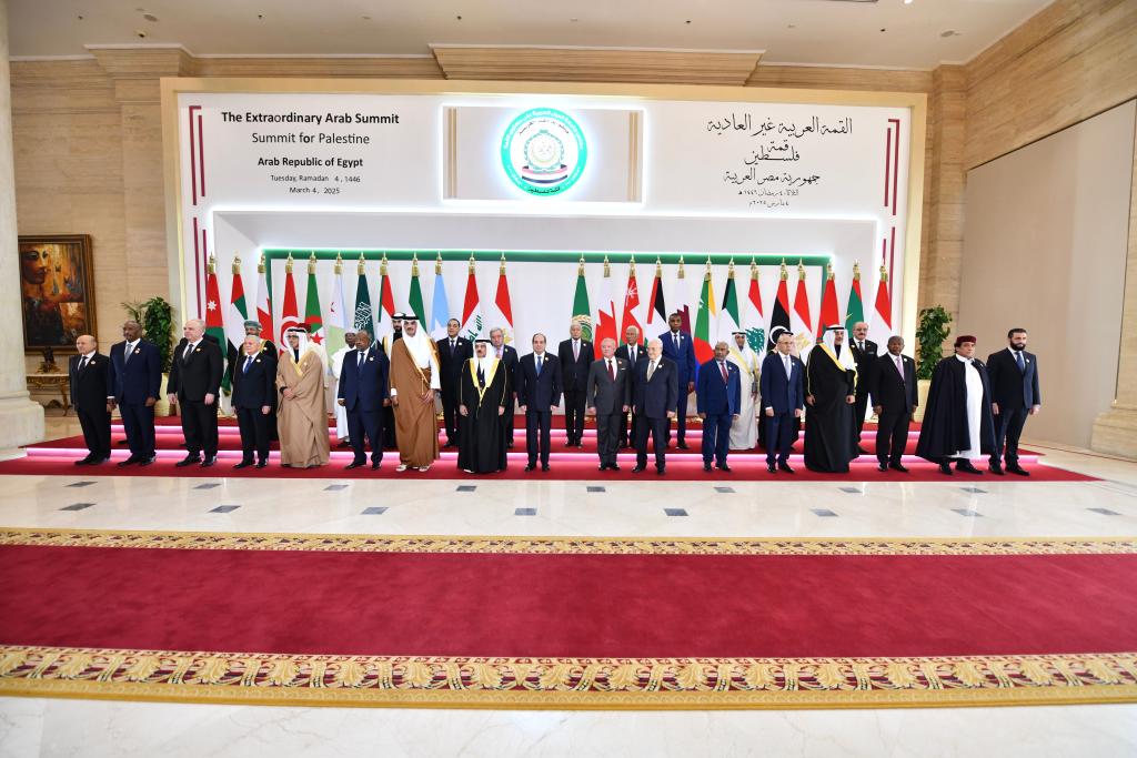 3月4日,与会领导人在埃及新行政首都出席阿拉伯国家紧急峰会前合影。新华社发(埃及总统府供图)