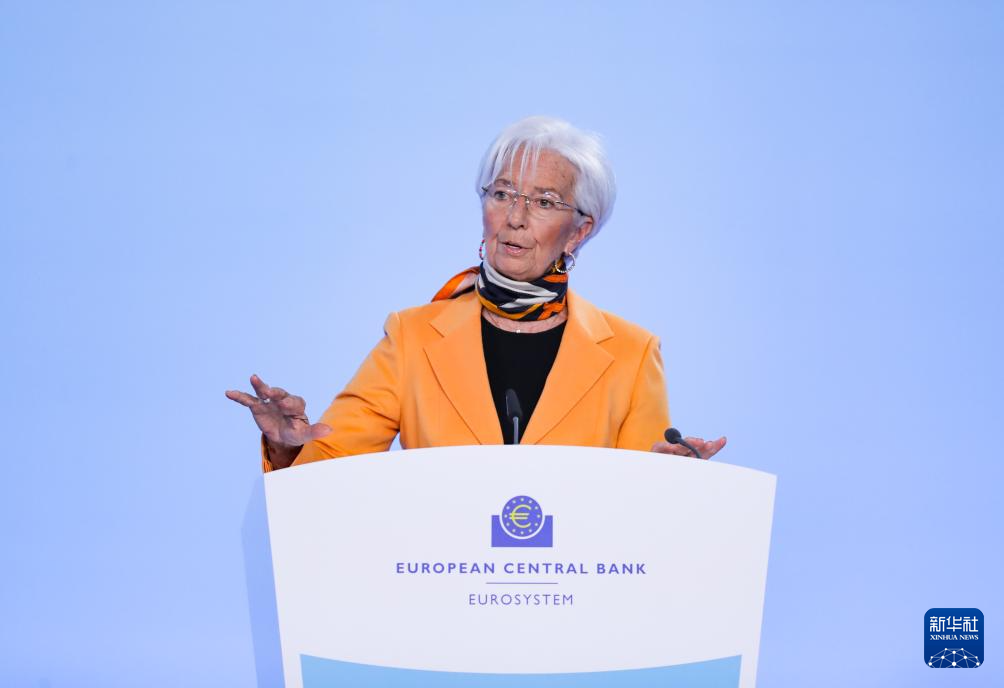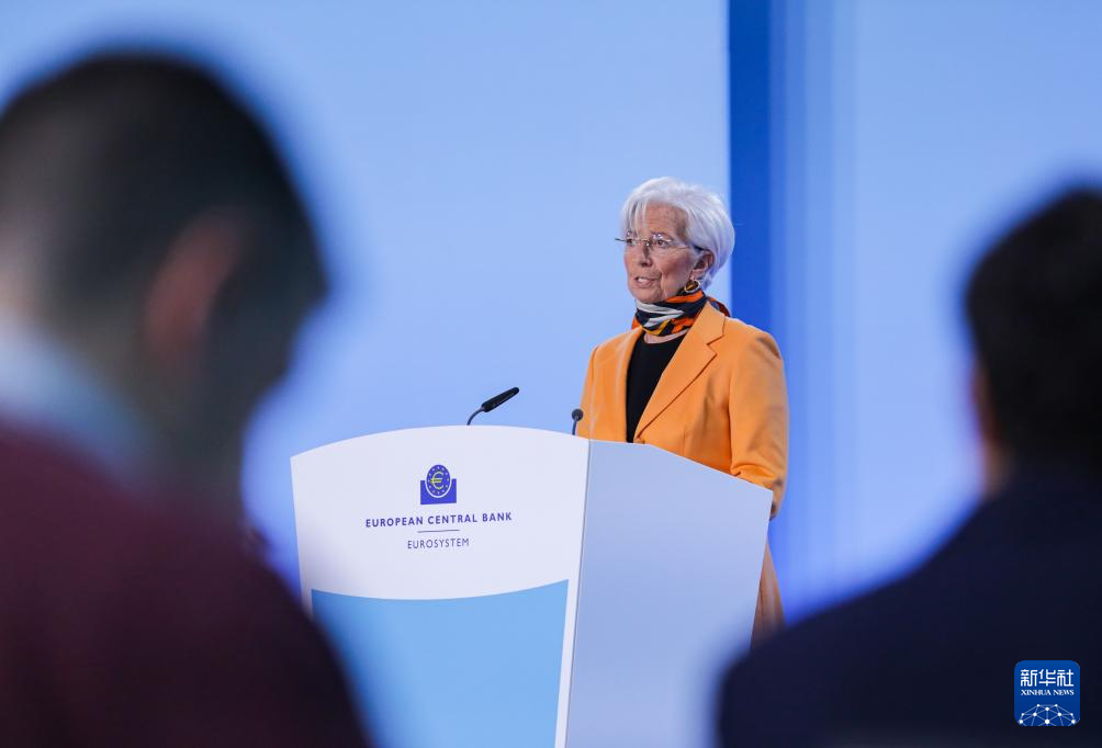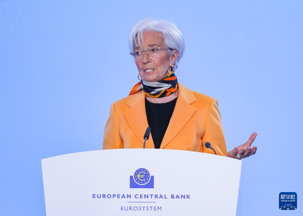 3月6日,欧洲中央银行行长拉加德在德国法兰克福欧洲央行总部举行的新闻发布会上讲话。