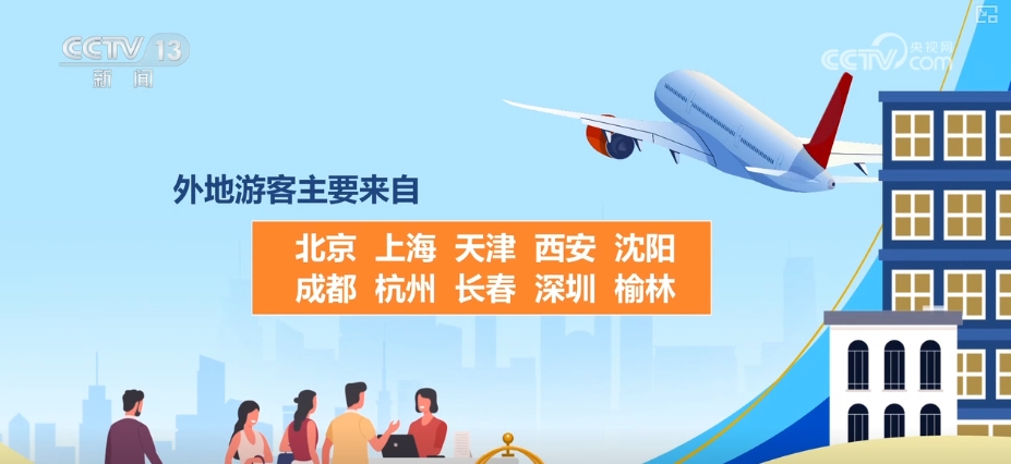 外地游客主要来自北京、上海、天津、西安、沈阳、成都、杭州、长春、深圳、榆林。