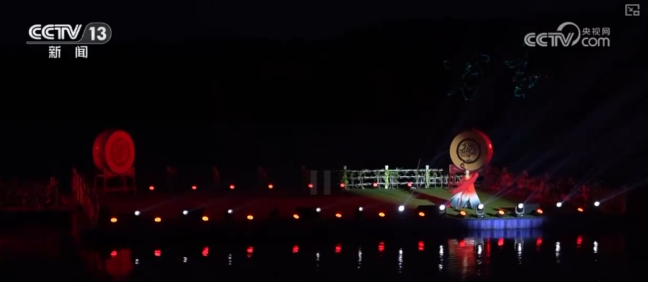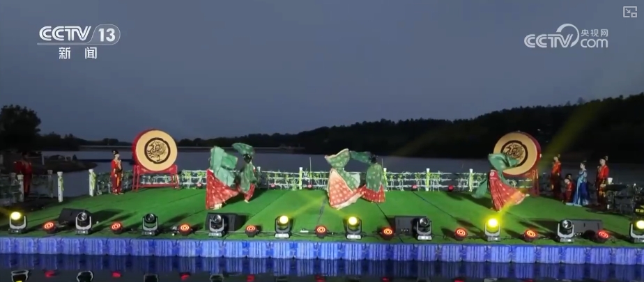 在湖北随州炎帝故里景区的烈山湖,湖心舞台上上演了反映炎帝文化的表演《神农祖舞》。表演者身着麻衣、手执农具,演绎炎帝神农氏“教民耕耘”“遍尝百草”等场景。随州是炎帝神农诞生地,神农氏在这里创耕耘、植五谷、尝百草、建居所,开创了长江流域的农耕文明,这种开拓精神也是传承至今。另外,随州还是编钟古乐之乡,在现场还能欣赏到楚风乐舞的表演,感受荆楚文化的魅力。