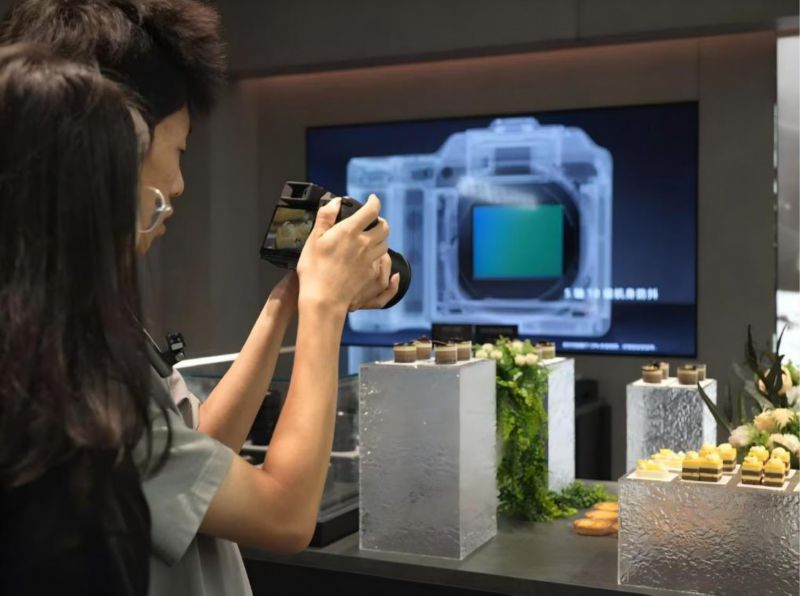 在天津万象城大疆|哈苏融合店,顾客在试用哈苏相机拍摄照片(2025年9月13日摄)。新华社发